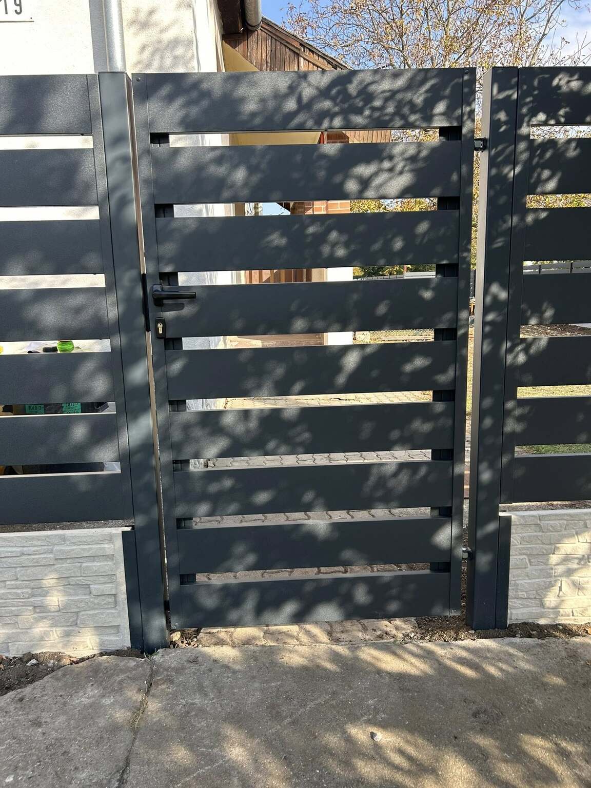 Modern megjelenésű antracit kapu
